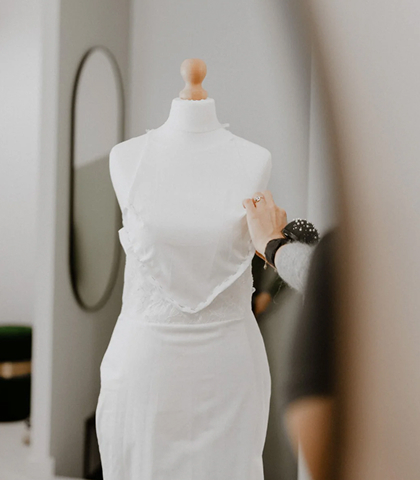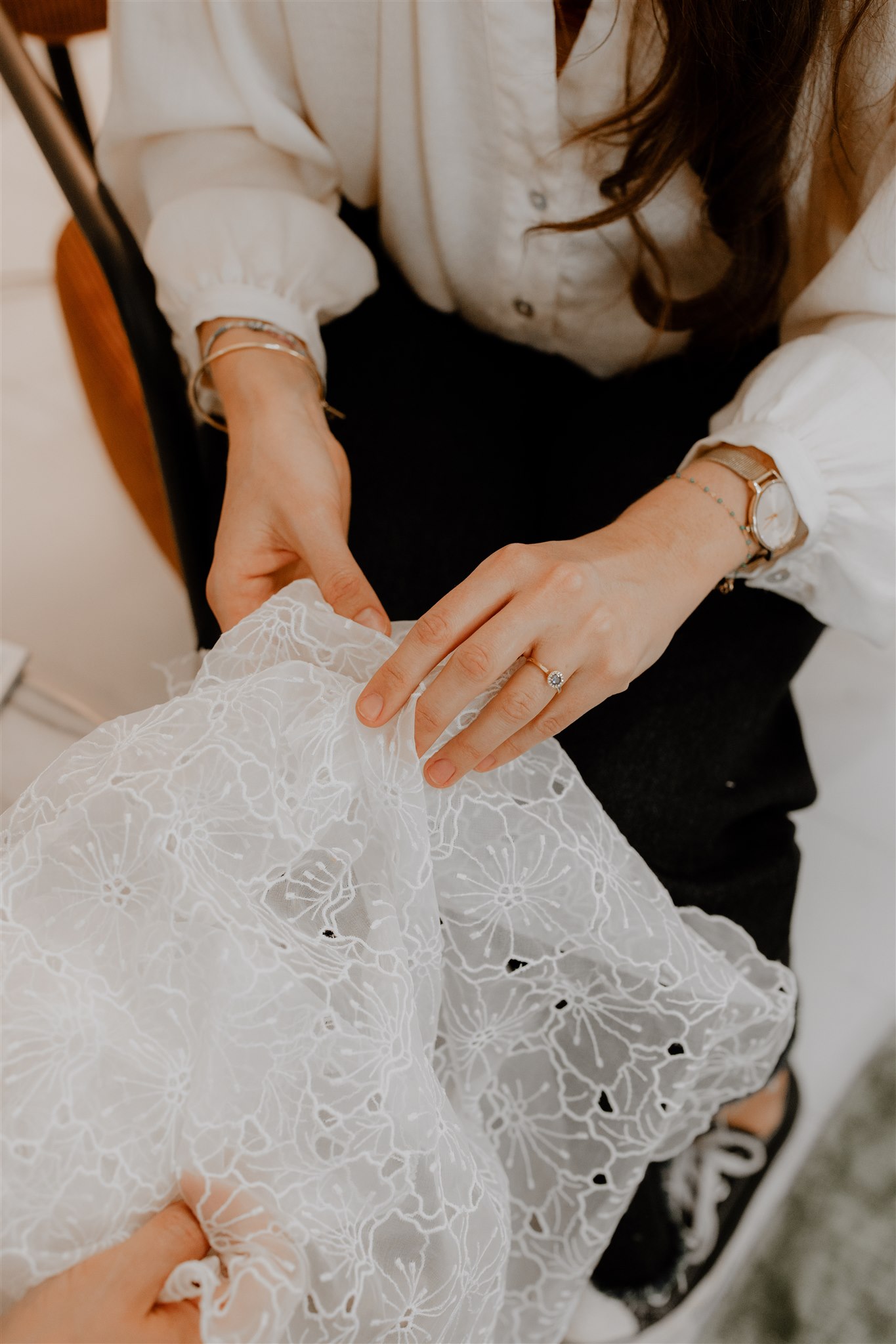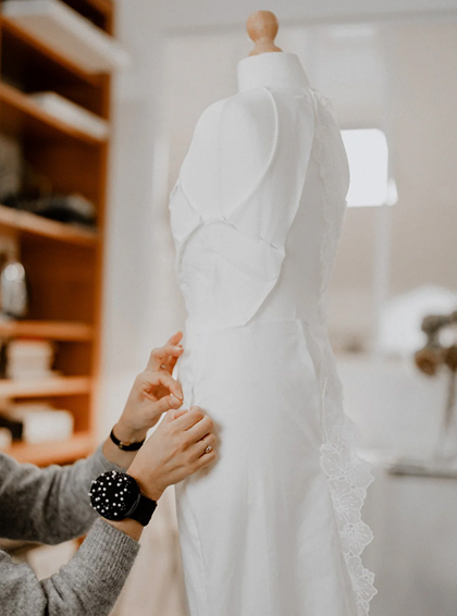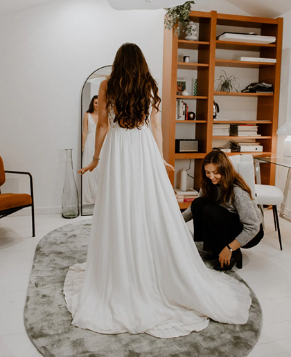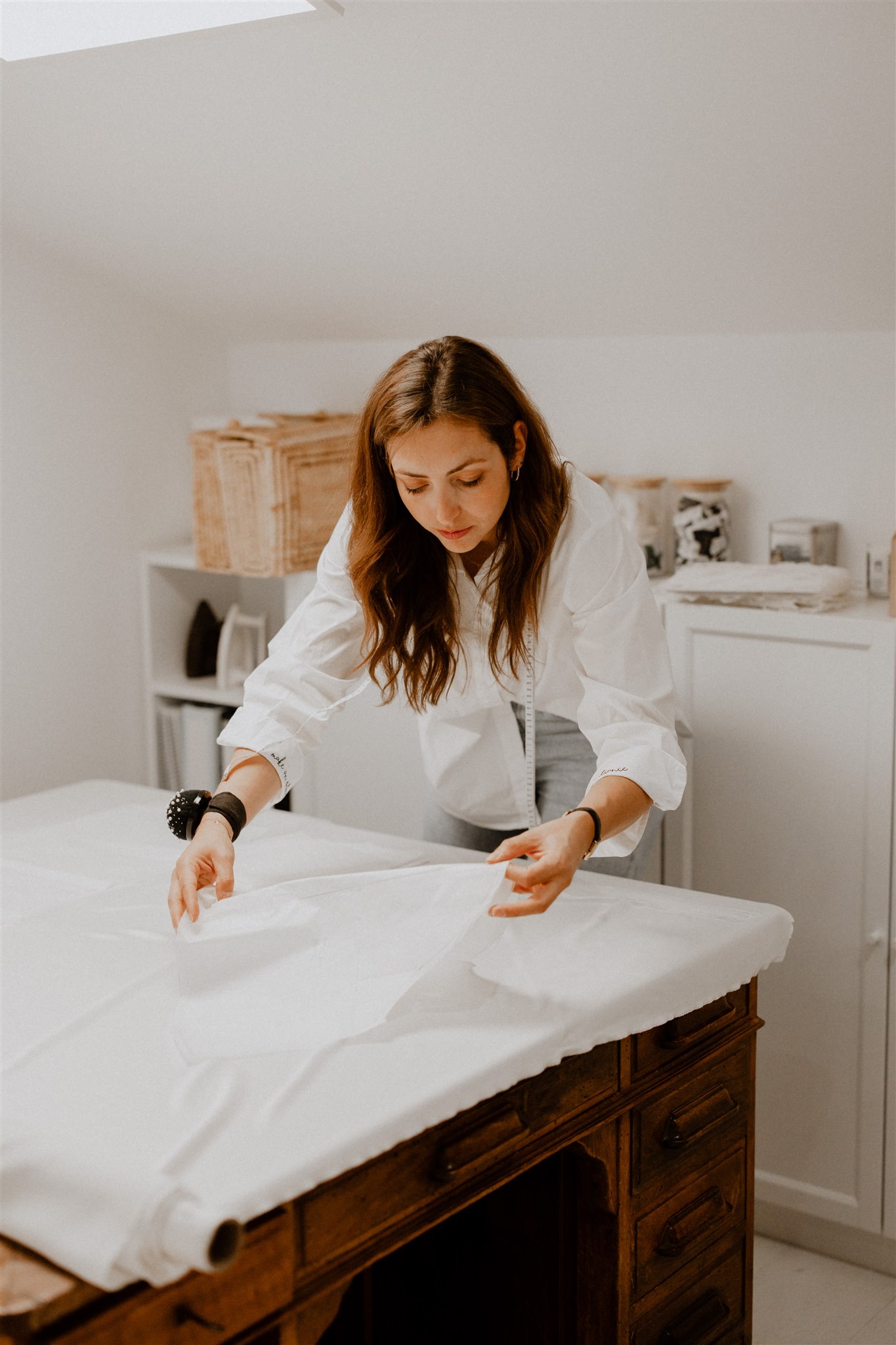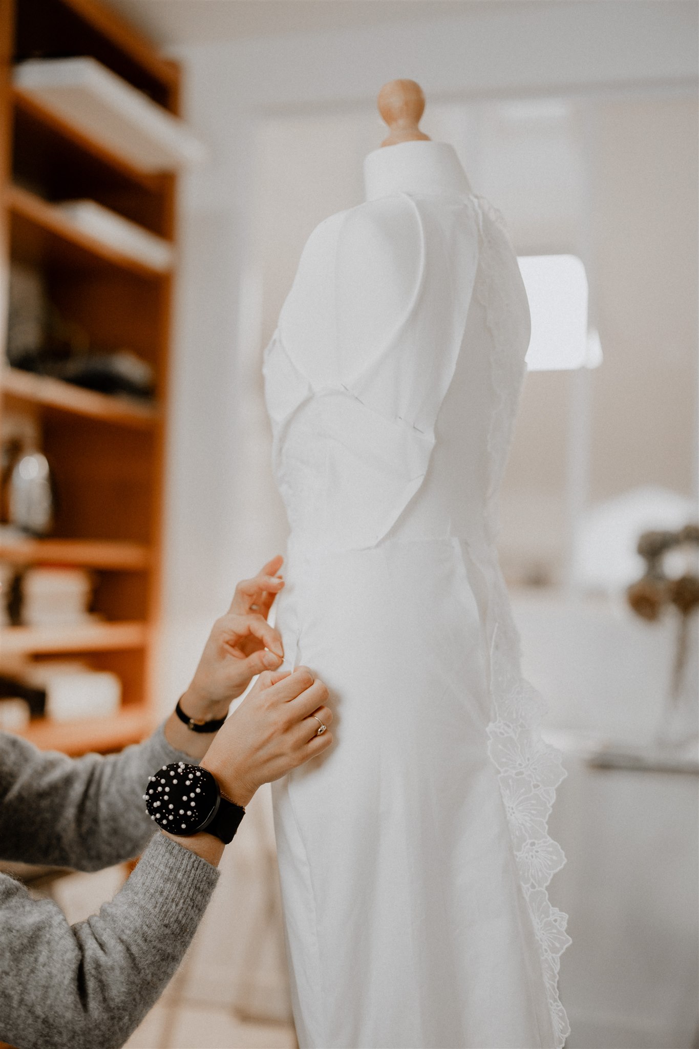Après mes dix années d’expérience, en tant que styliste-graphiste pour des marques haut de gamme et luxe dans le prêt à porter femme et enfant, j’ai décidé de lancer en février 2022 mon atelier de création, pour proposer aux futures mariées mon expertise et mon savoir-faire. Je voulais proposer ma créativité et mon écoute à des femmes qui recherchent l’exclusivité pour leur mariage, un évènement spécial, ou juste pouvoir se faire plaisir. J’aime l’idée de pouvoir conseiller ces femmes pour leur transmettre toute mon expertise afin qu’elles se sentent plus en confiance avec leur corps.